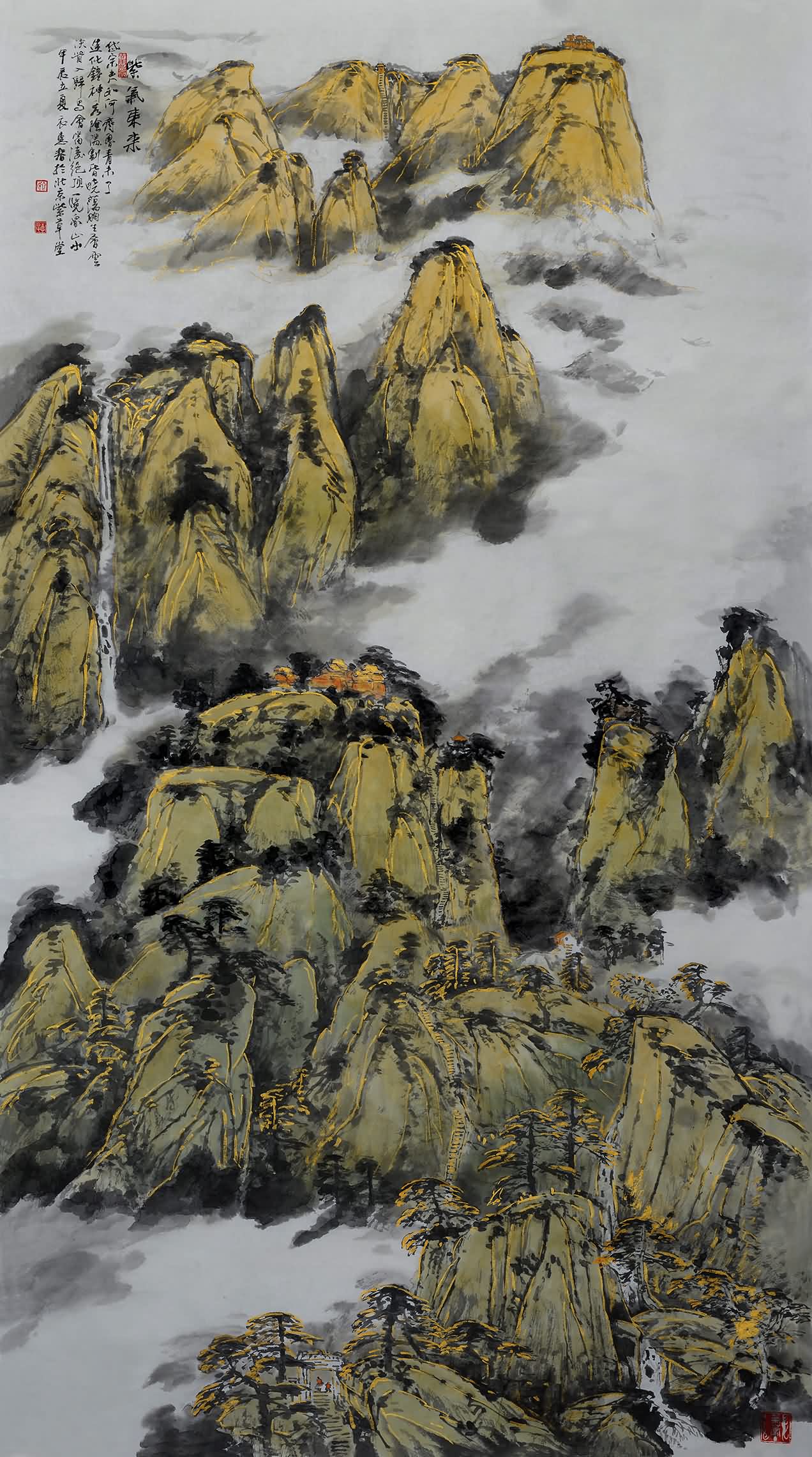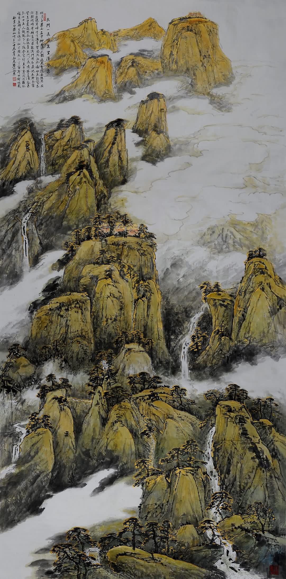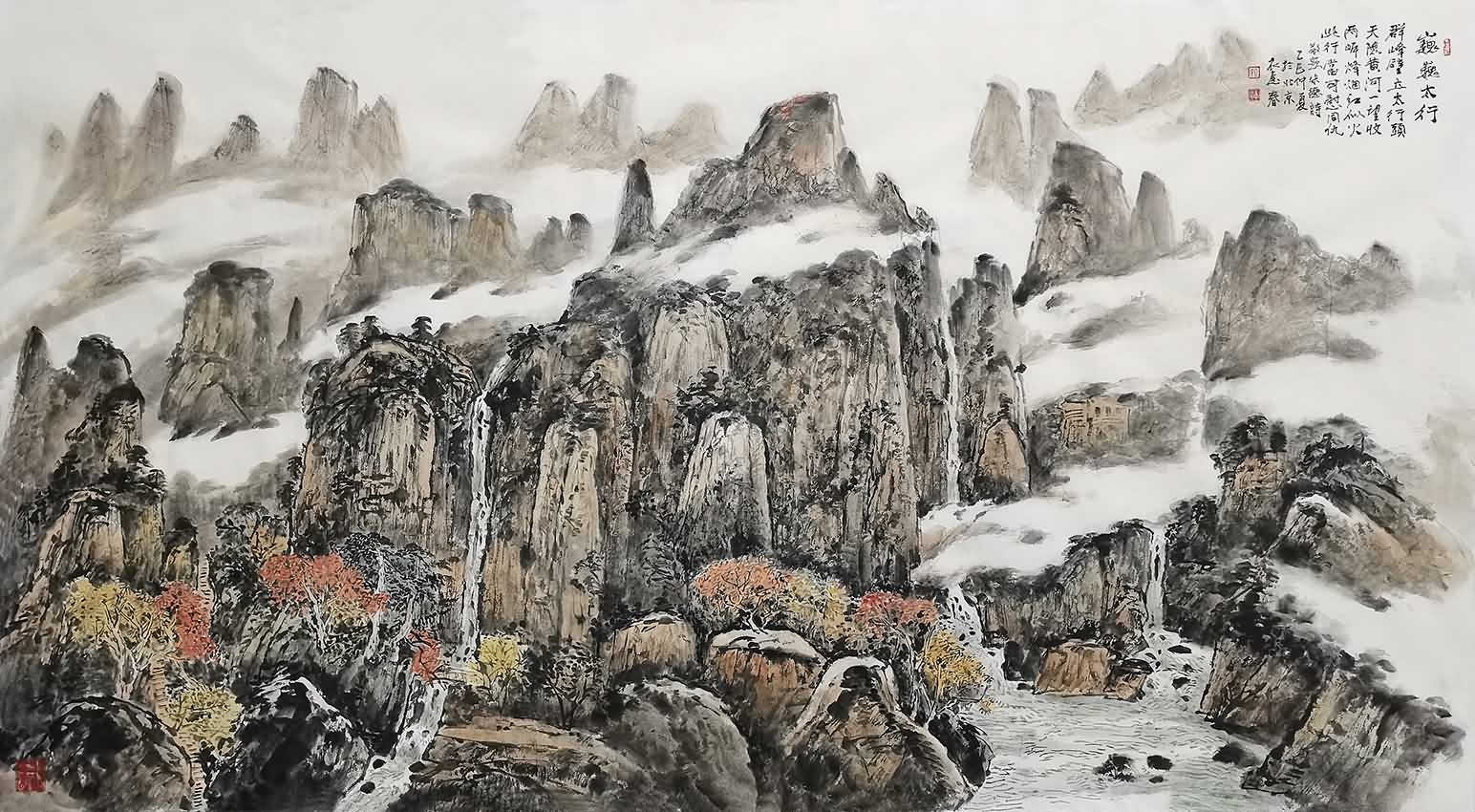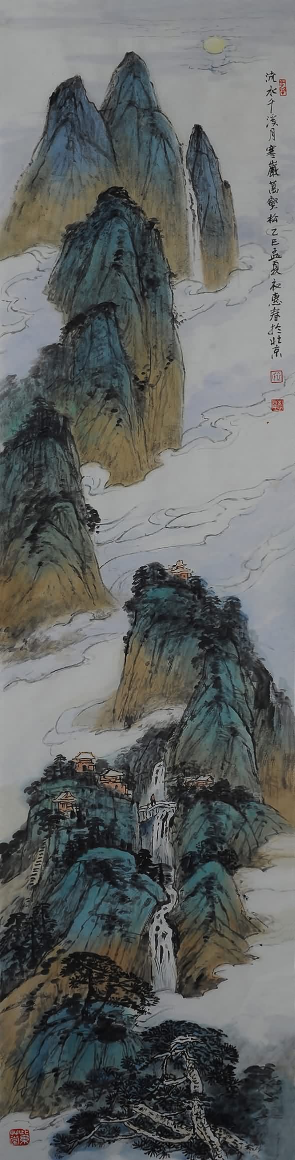 | 千峰竞秀180x70cm | 巍巍太行180x90cm | 山月不知心里事45x25cm | ||