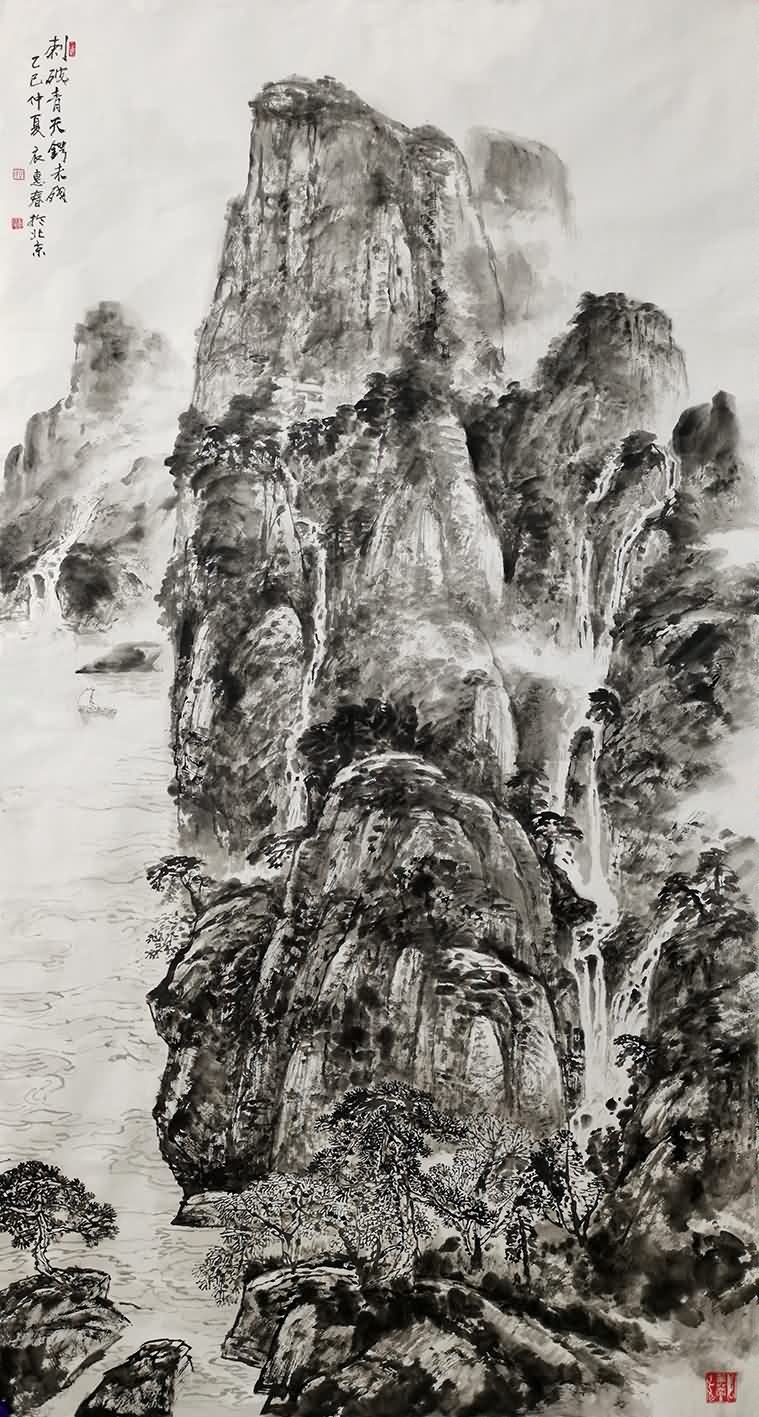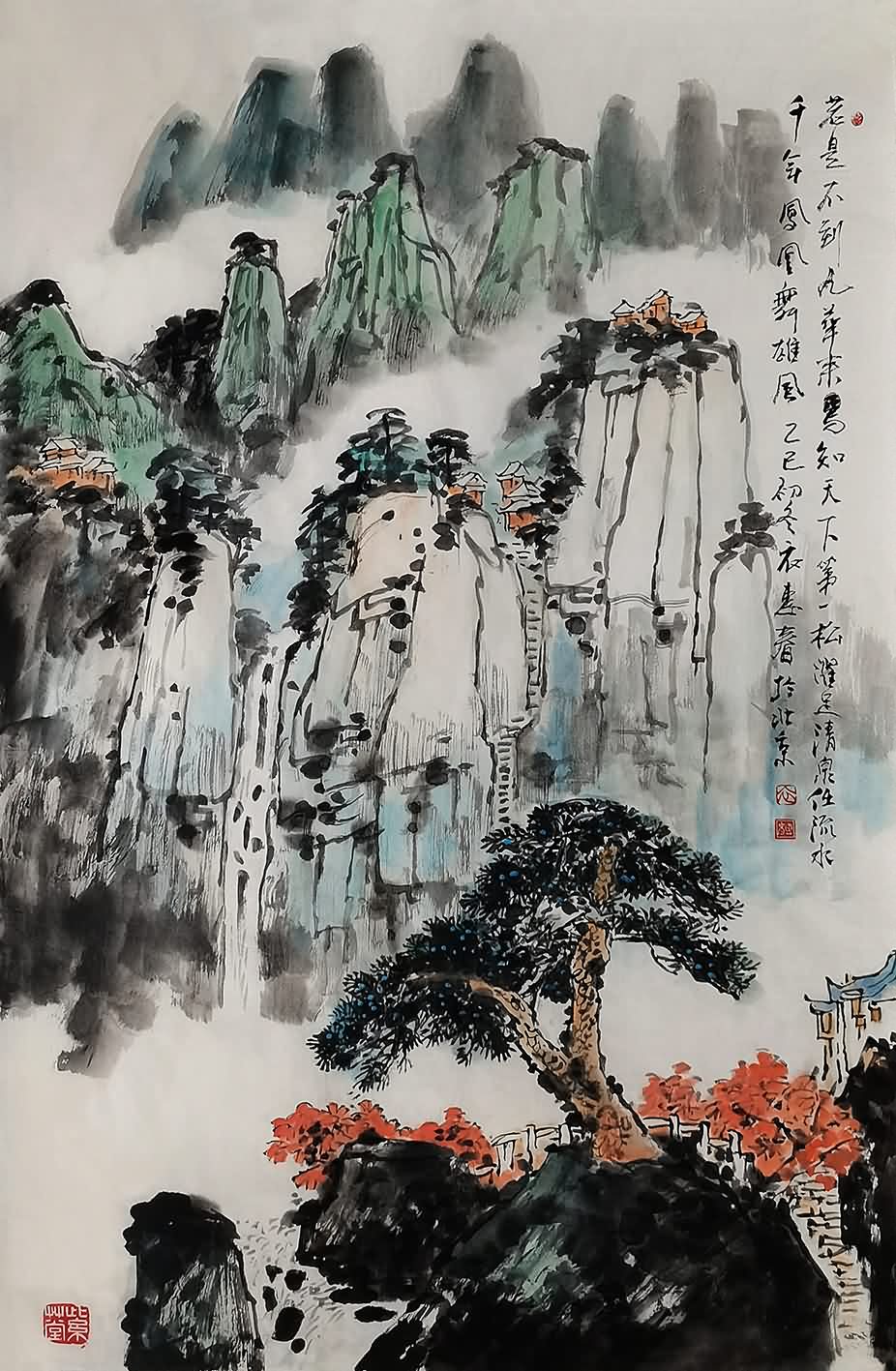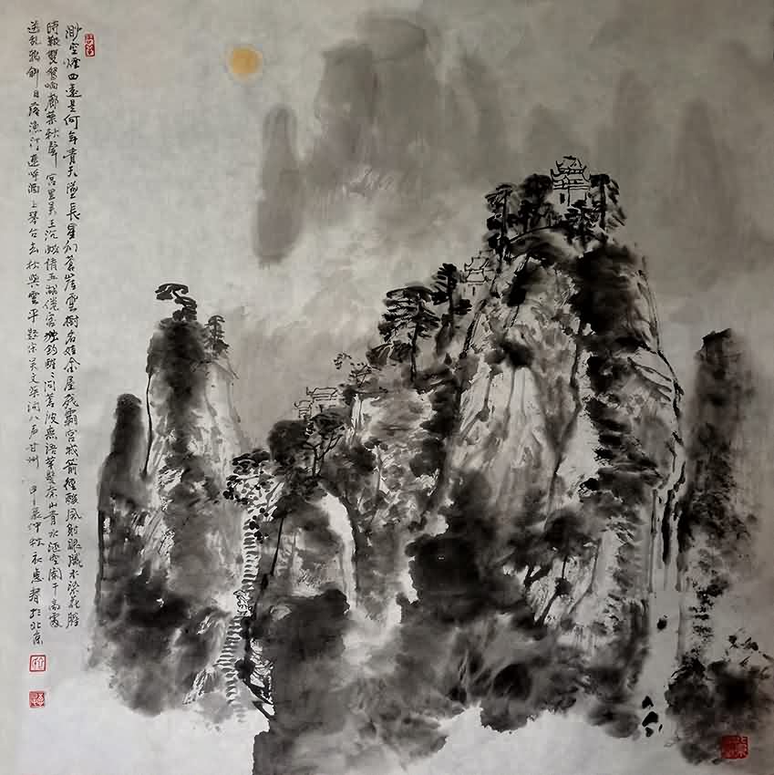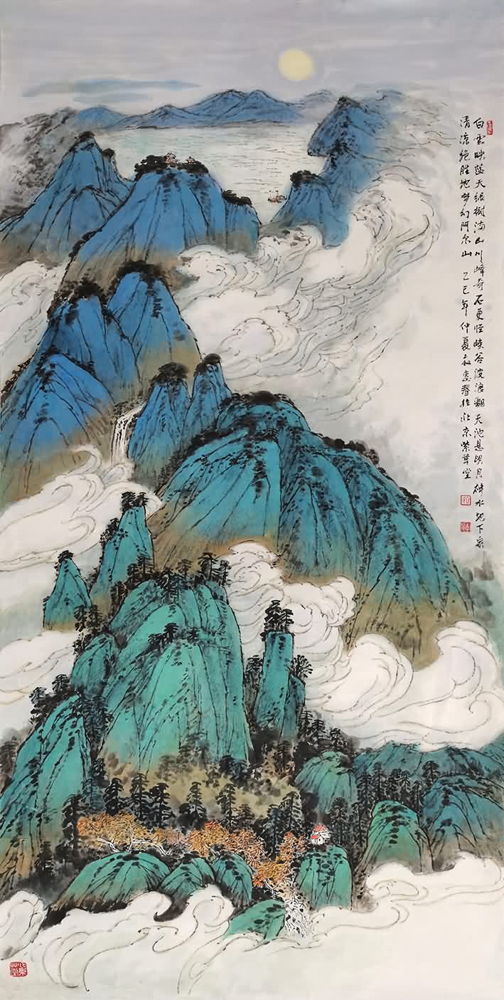| 千峰竞秀180x70cm | 巍巍太行180x90cm | 山月不知心里事45x25cm | ||