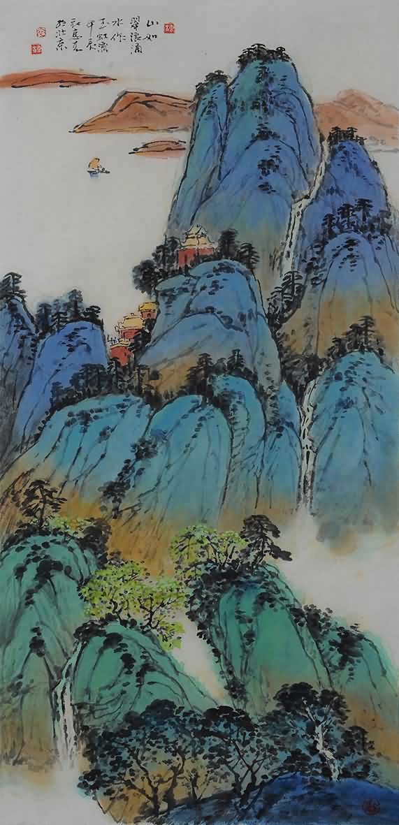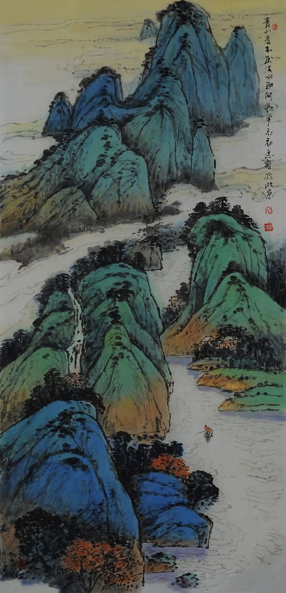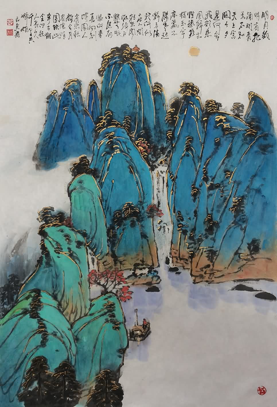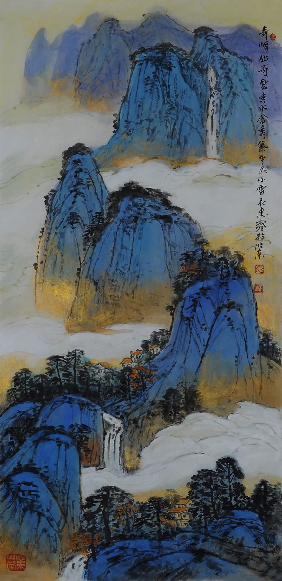 | 千峰竞秀180x70cm | 巍巍太行180x90cm | 山月不知心里事45x25cm | ||