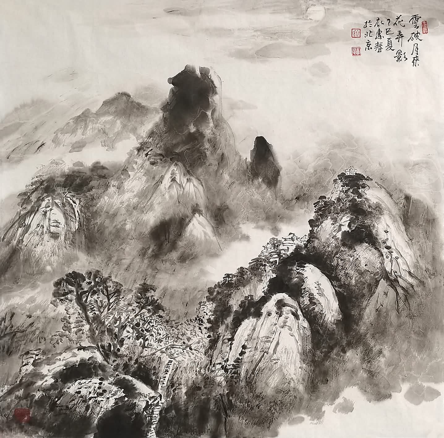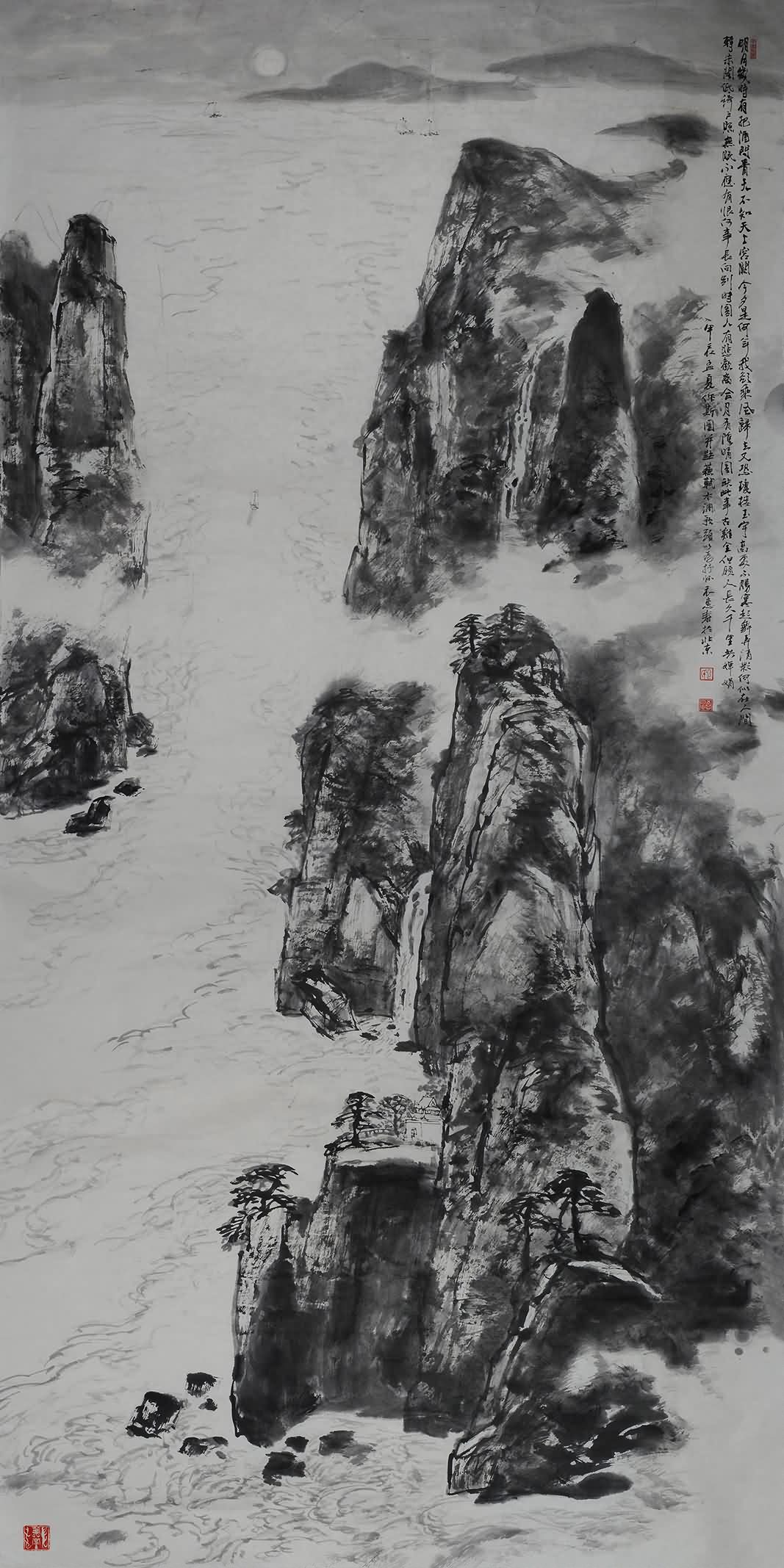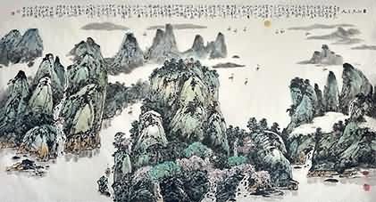 | 大江东去140x70cm | 牛口峪水上公园写生 | 云破月来花弄影70x70cm | ||