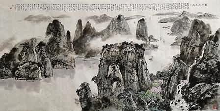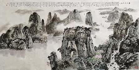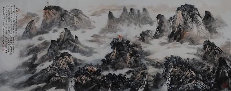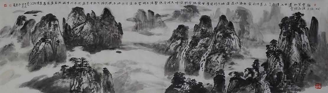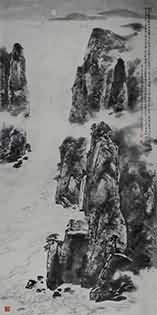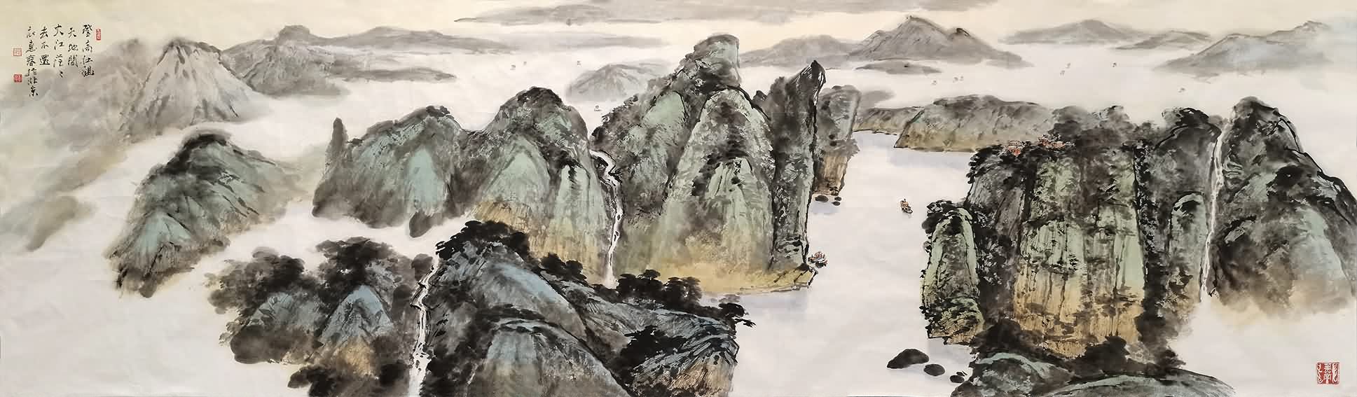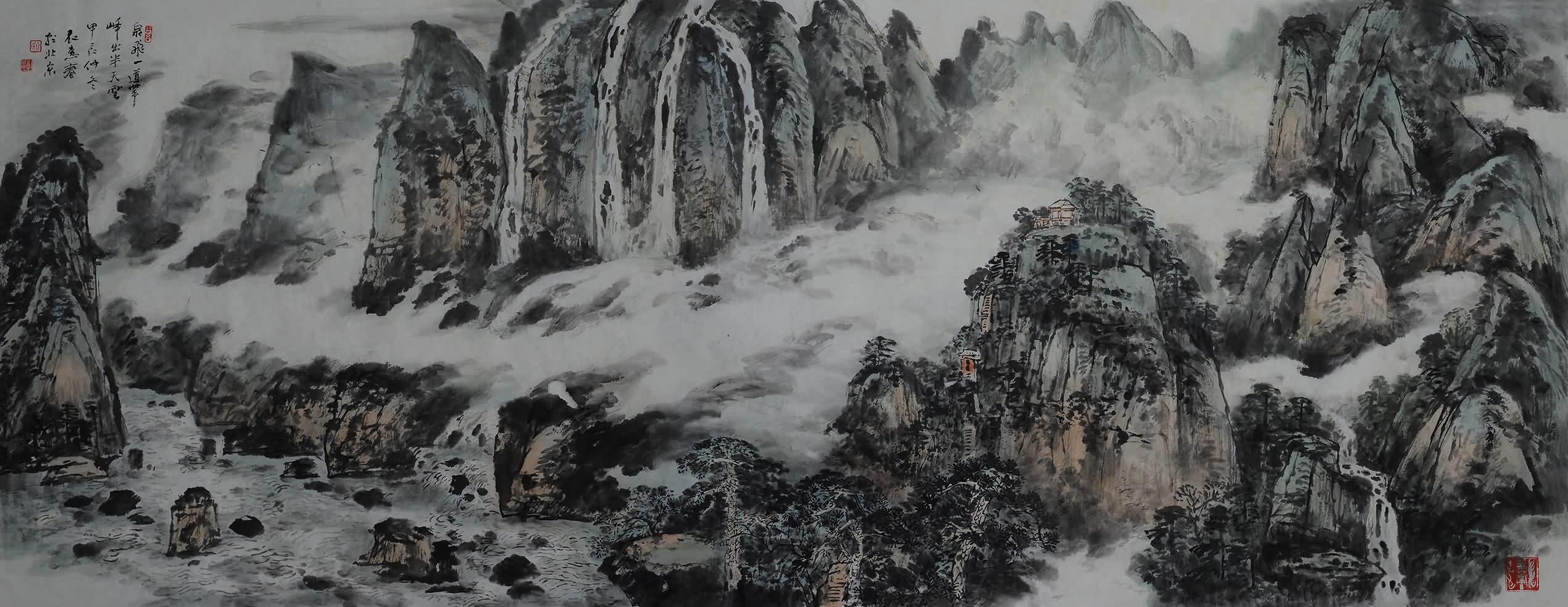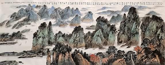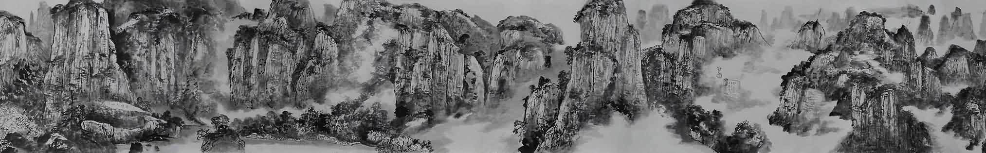| 千峰竞秀180x70cm | 寥廓江天万里霜180x90cm | 庐山风云140x70cm | ||