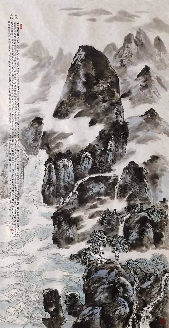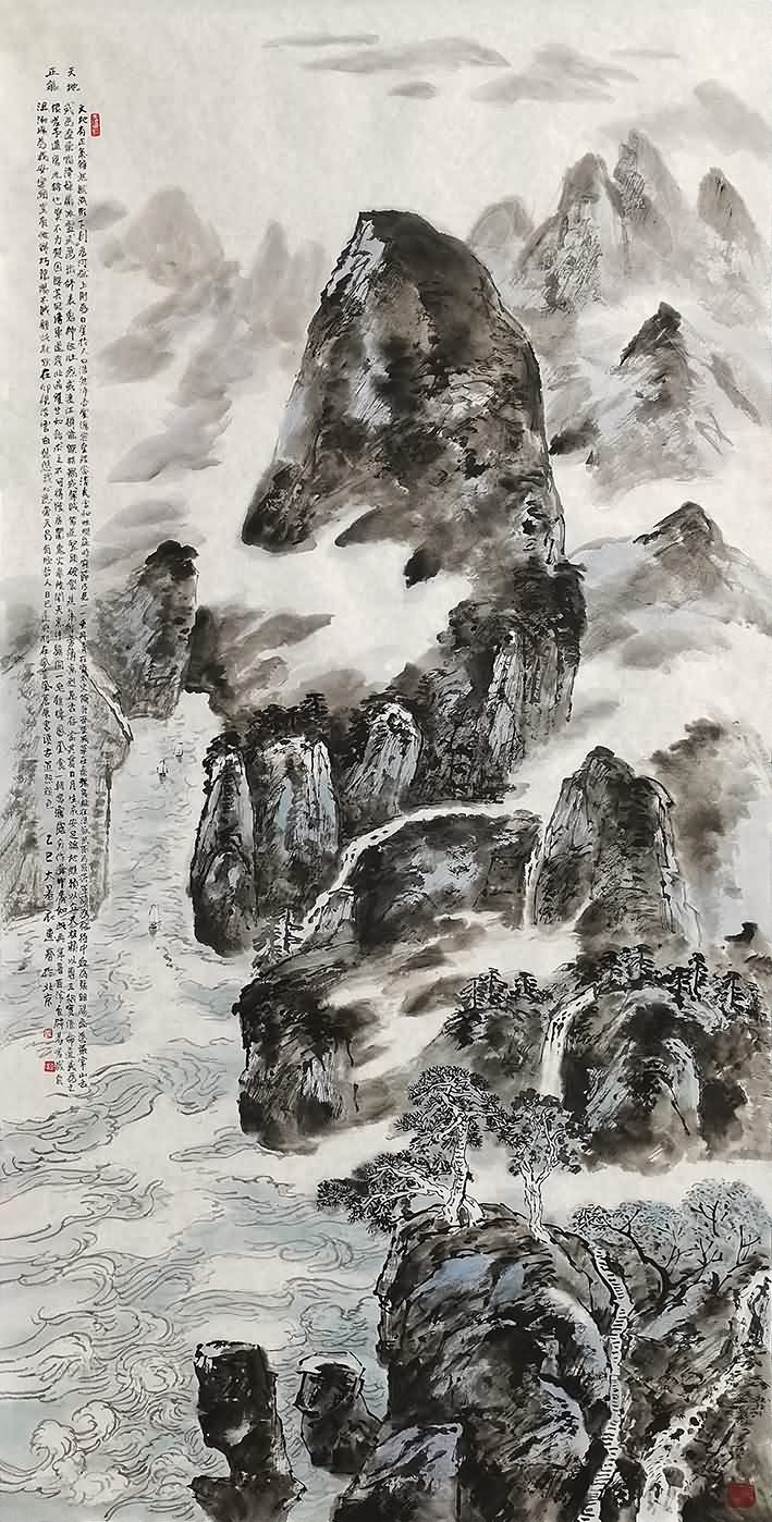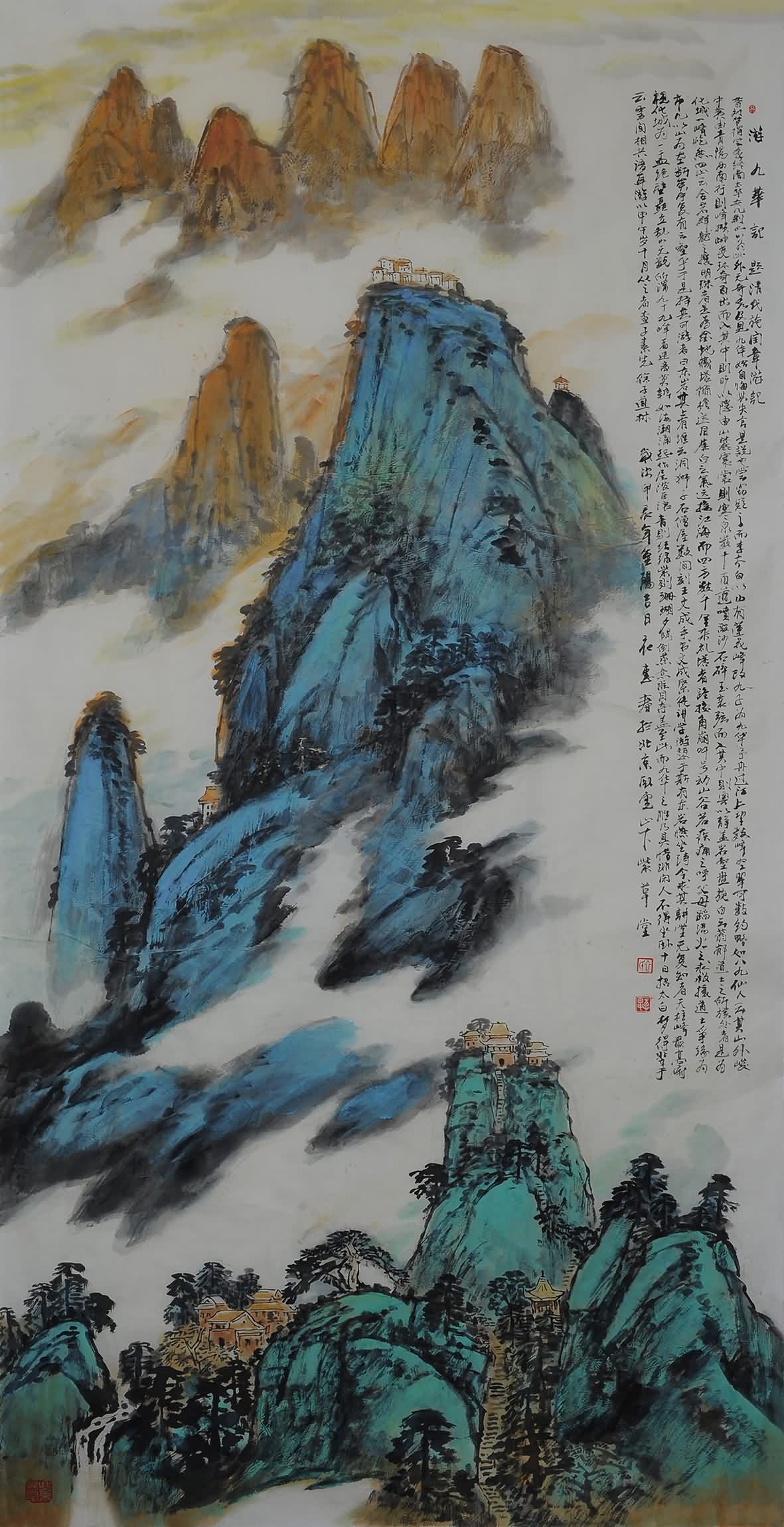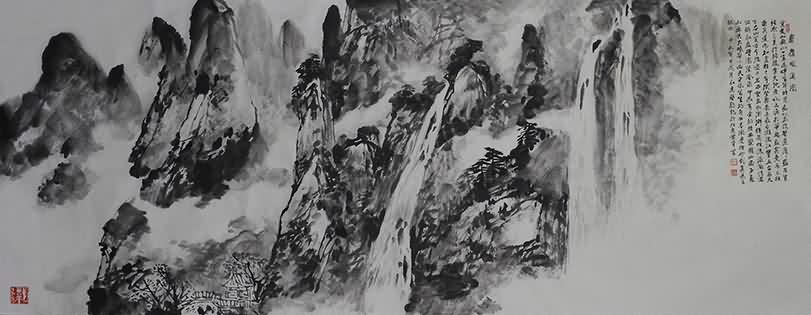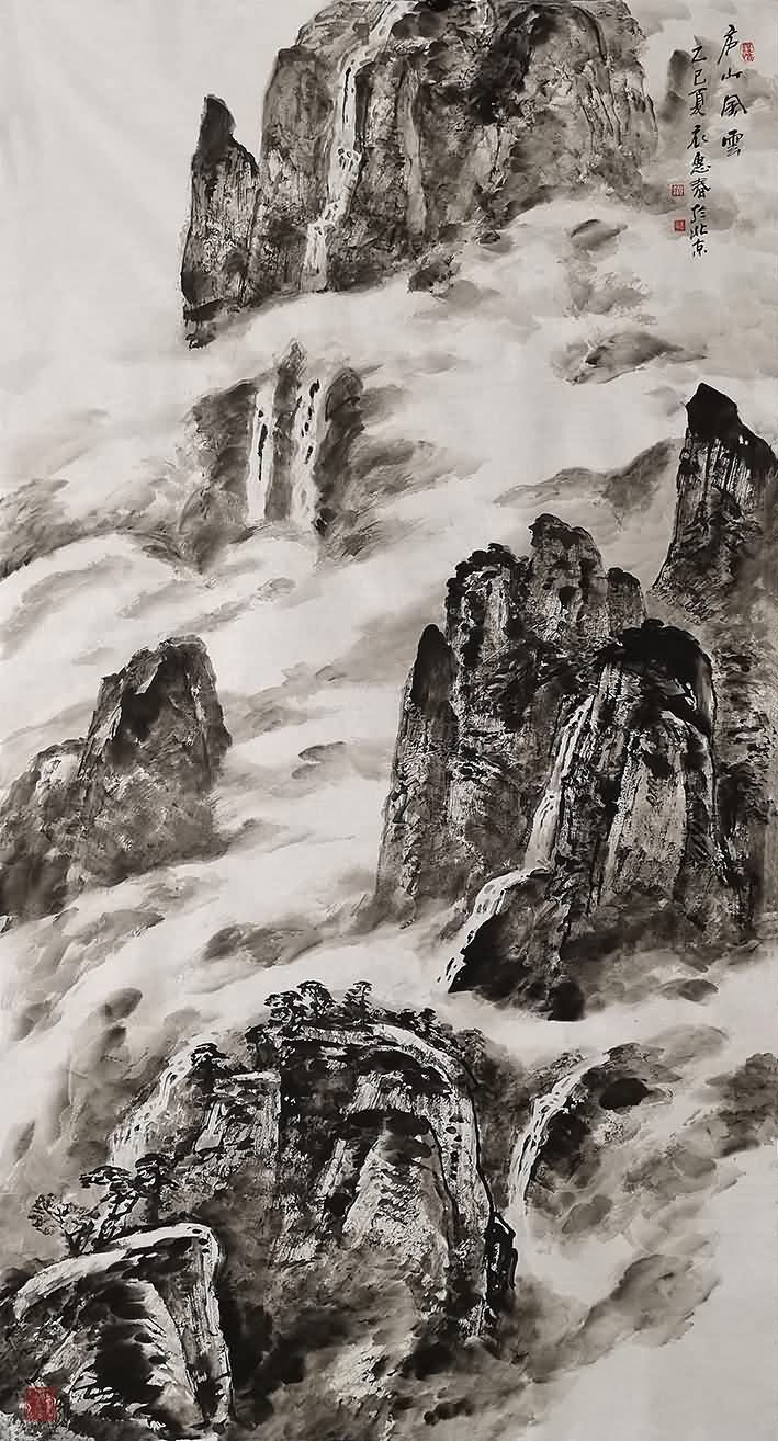 | 千峰竞秀180x70cm | 寥廓江天万里霜180x90cm | 庐山风云140x70cm | ||