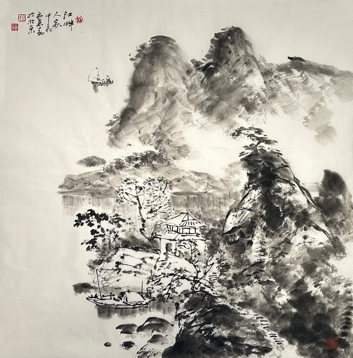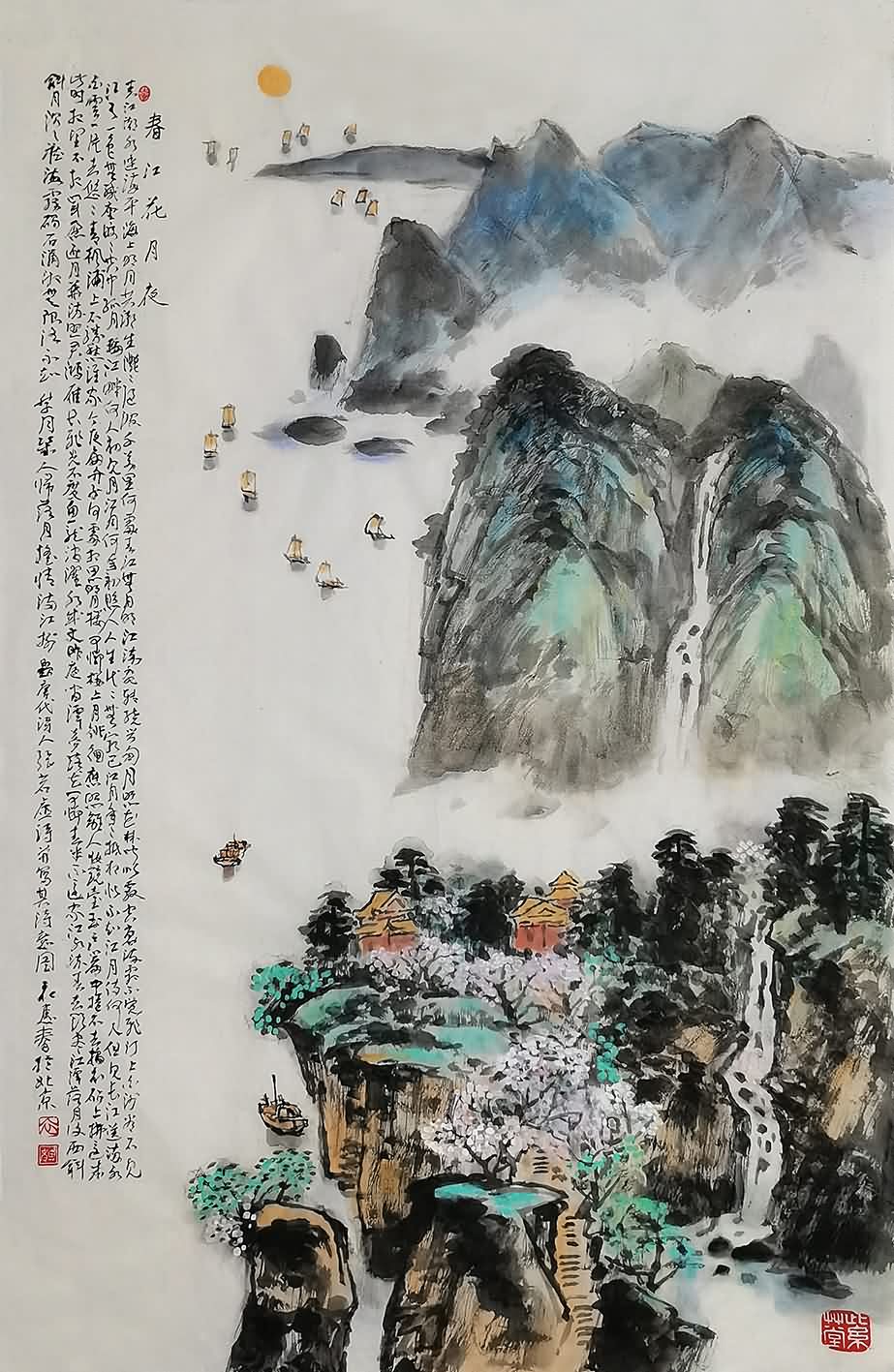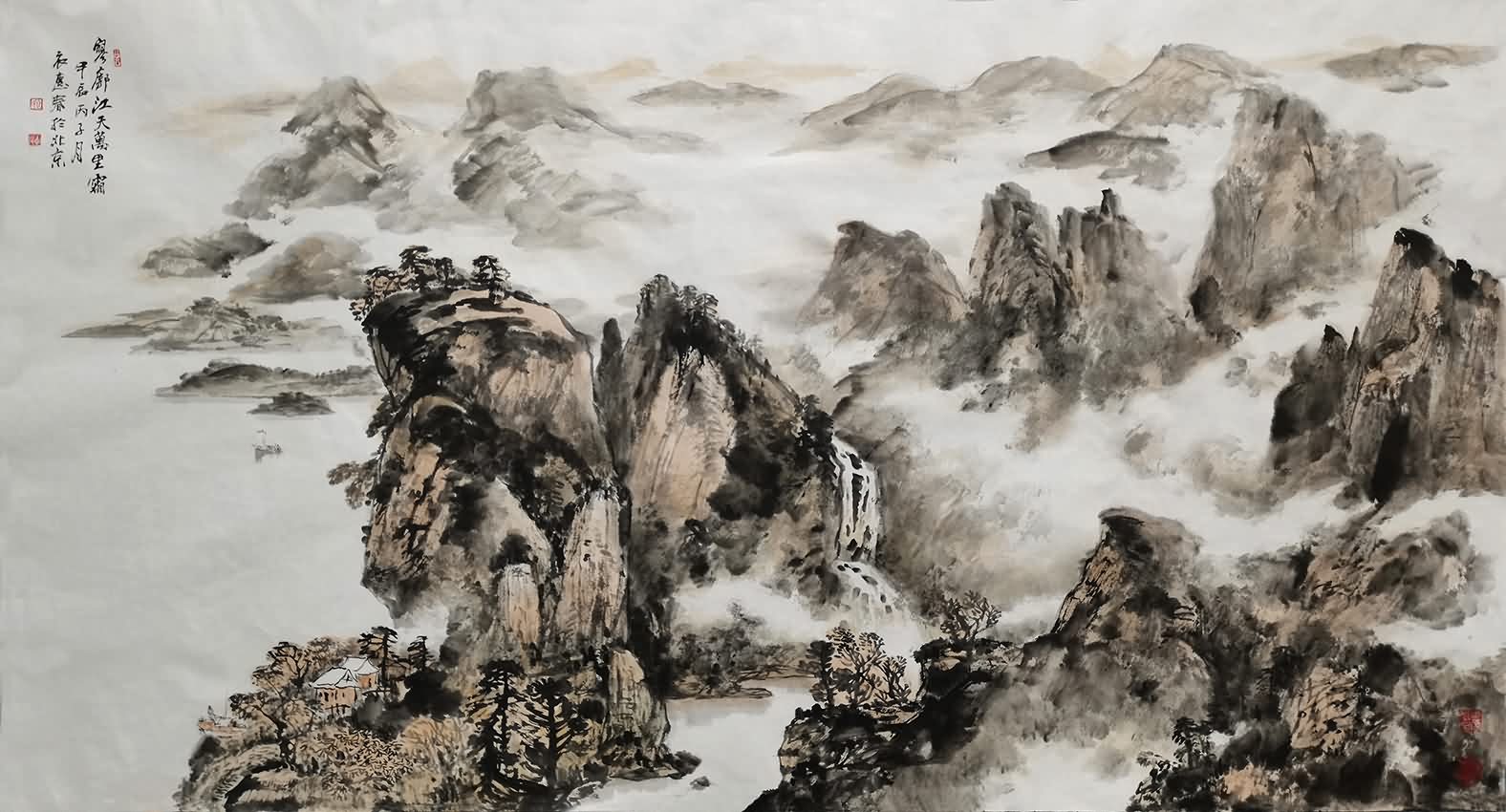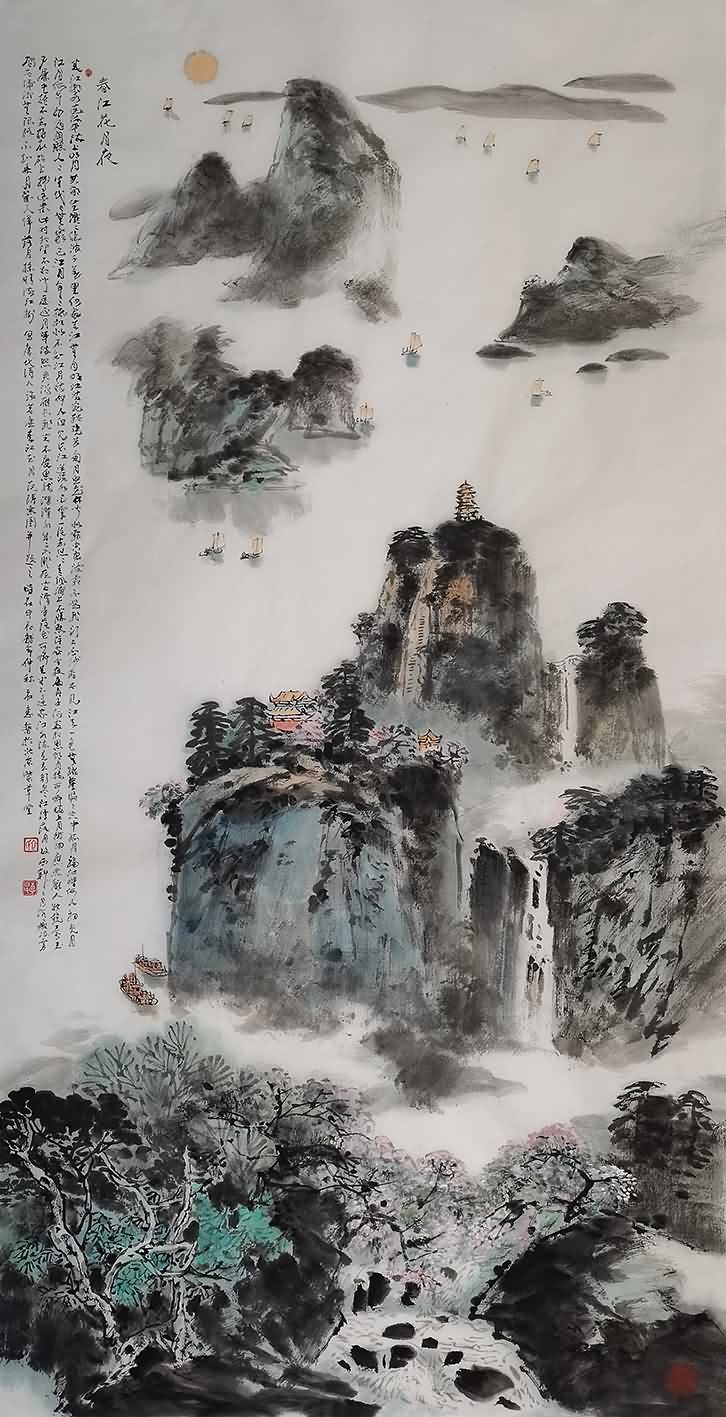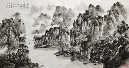 | 天庭列嶂图180x97cm | 春江花月夜.180x97cm | 对潇潇暮雨洒江天70x70cm | ||