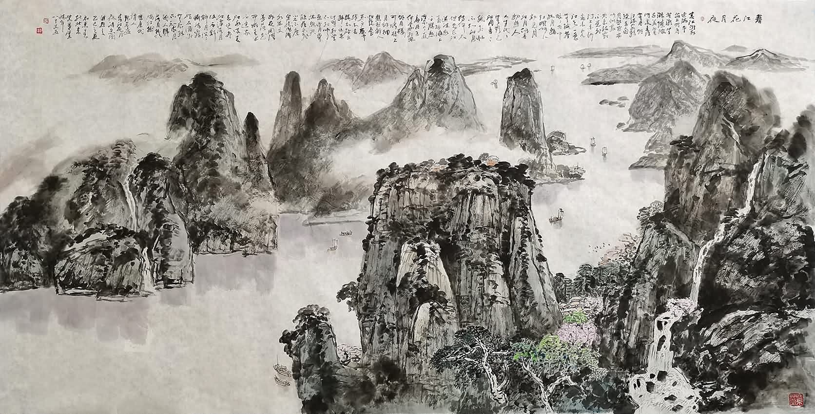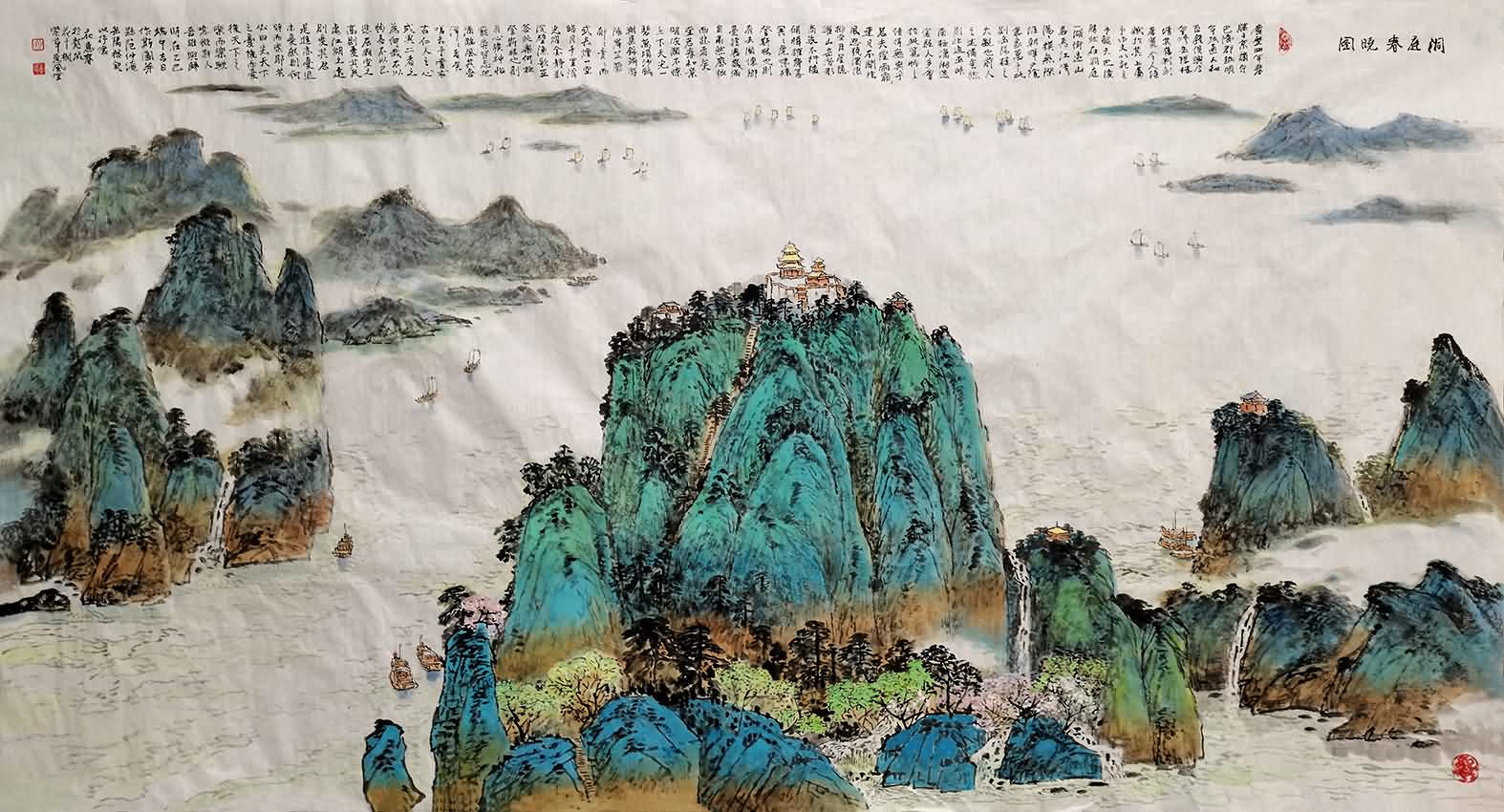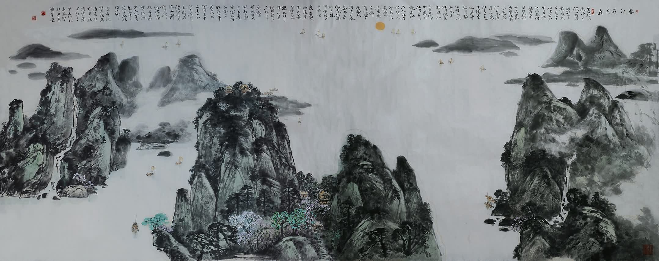 | 春江花月夜140x68cm | 黄山胜境140x68cm | 灵山秀水共徘徊140x68cm | 天地正气 140x68cm | 戏题画山水图歌180x90cm |