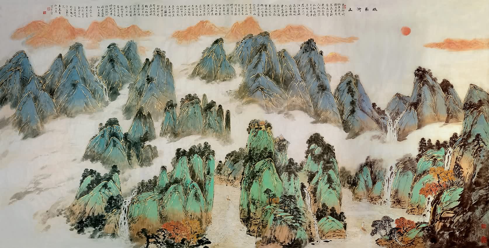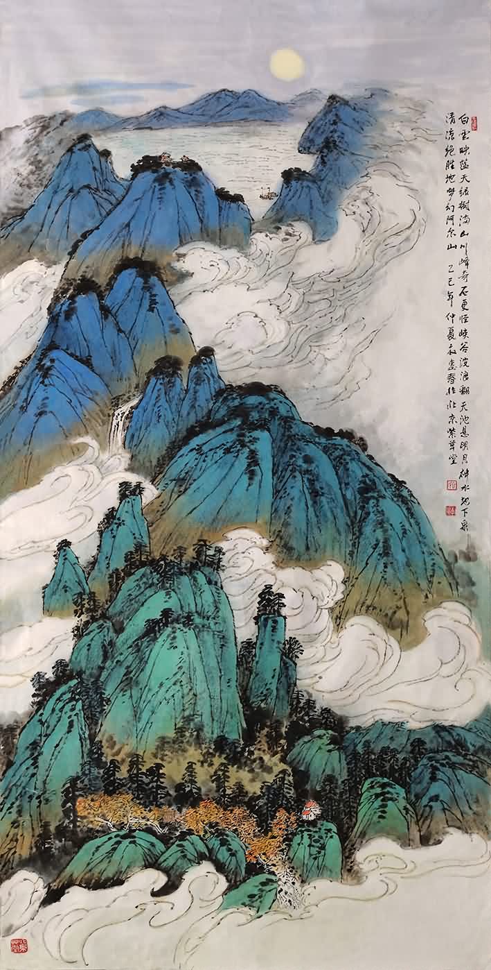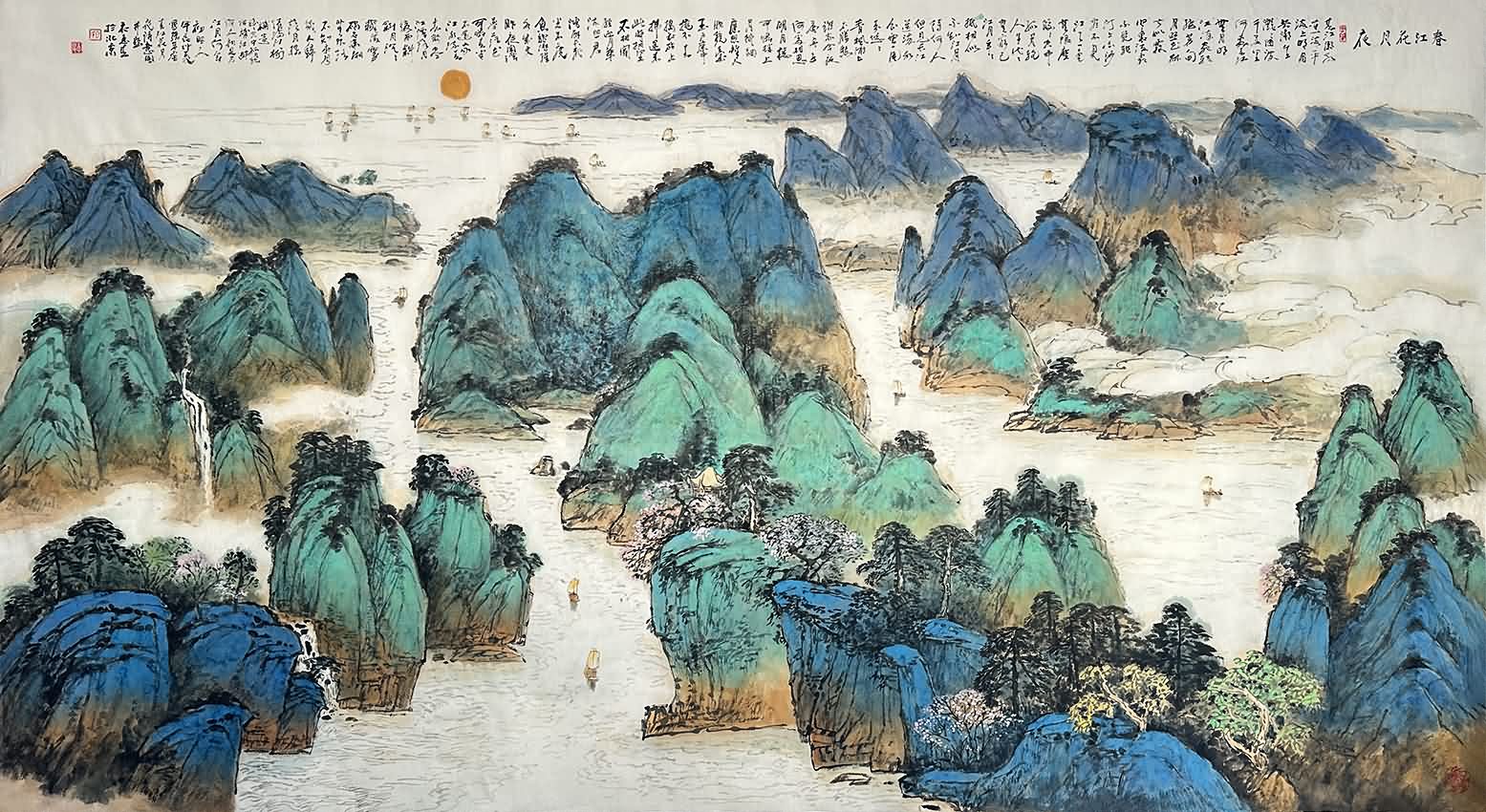 | 春江花月夜140x68cm | 黄山胜境140x68cm | 灵山秀水共徘徊140x68cm | 天地正气 140x68cm | 戏题画山水图歌180x90cm |