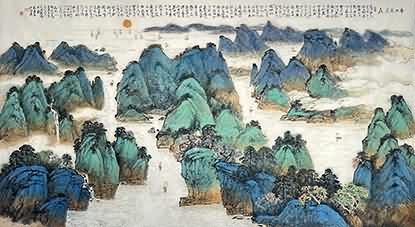 | 明月几时有70x45cm | 井冈山胜境图 140x70cm | 刺破青天锷未残140x70cm | 神山福地140x70cm | 梦游天姥图70x45cm |