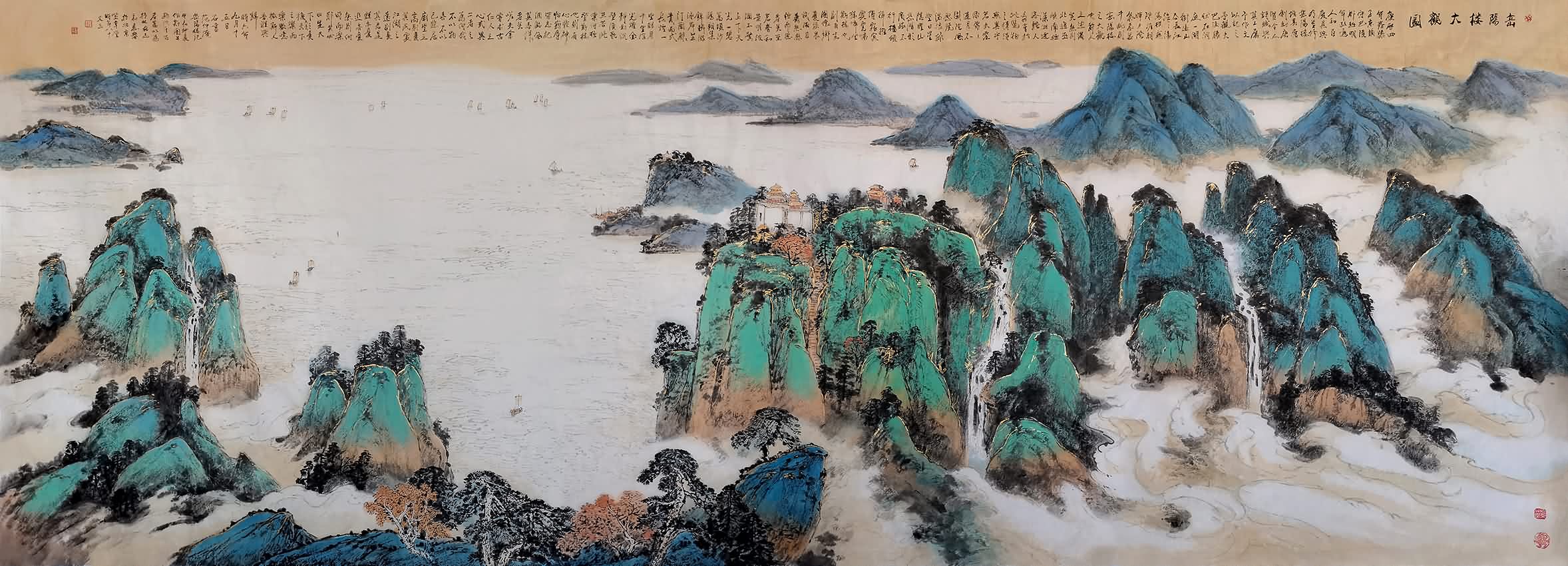 | 五台山胜境图400x200cm | 春江花月夜140x70cm | 浩天舒百日45x25cm | ||