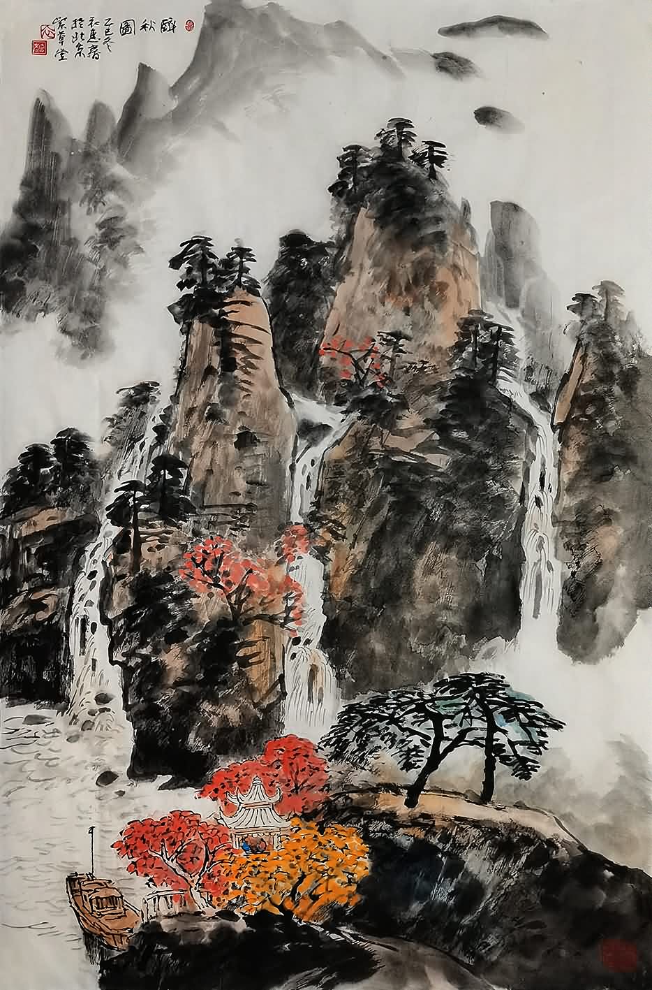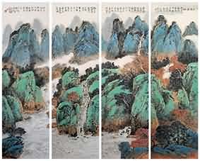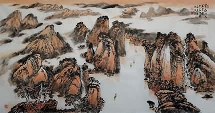 | 黄山胜境图70x45cm | 白云映兰天140x70cm | 天地正气 140x70cm | 醉秋图70x45cm | 庐山风云140x70cm |