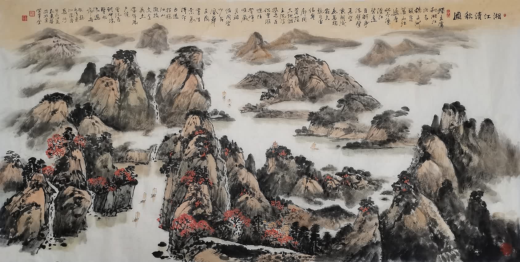 | 湘江清秋图140x70cm | 奇峰出奇云 秀木含秀气45x90cm | 浮岚叠嶂 45x90cm | ||