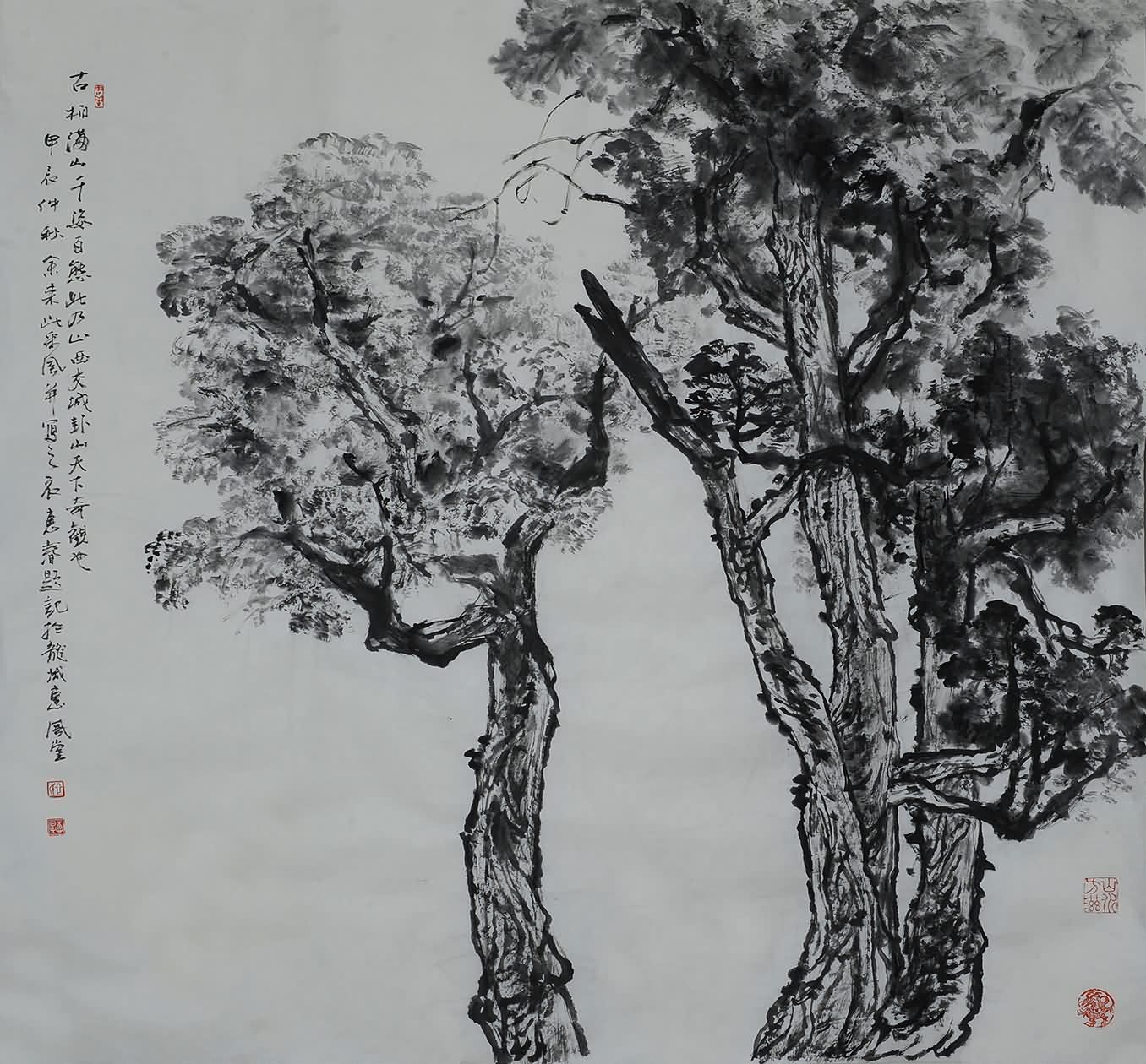| 卦山古柏写真图70x70cm | 卦山柏魂140x70cm | 古柏满山70x70cm | 江畔人家50x50cm | 对潇潇暮雨洒江天70x70cm |