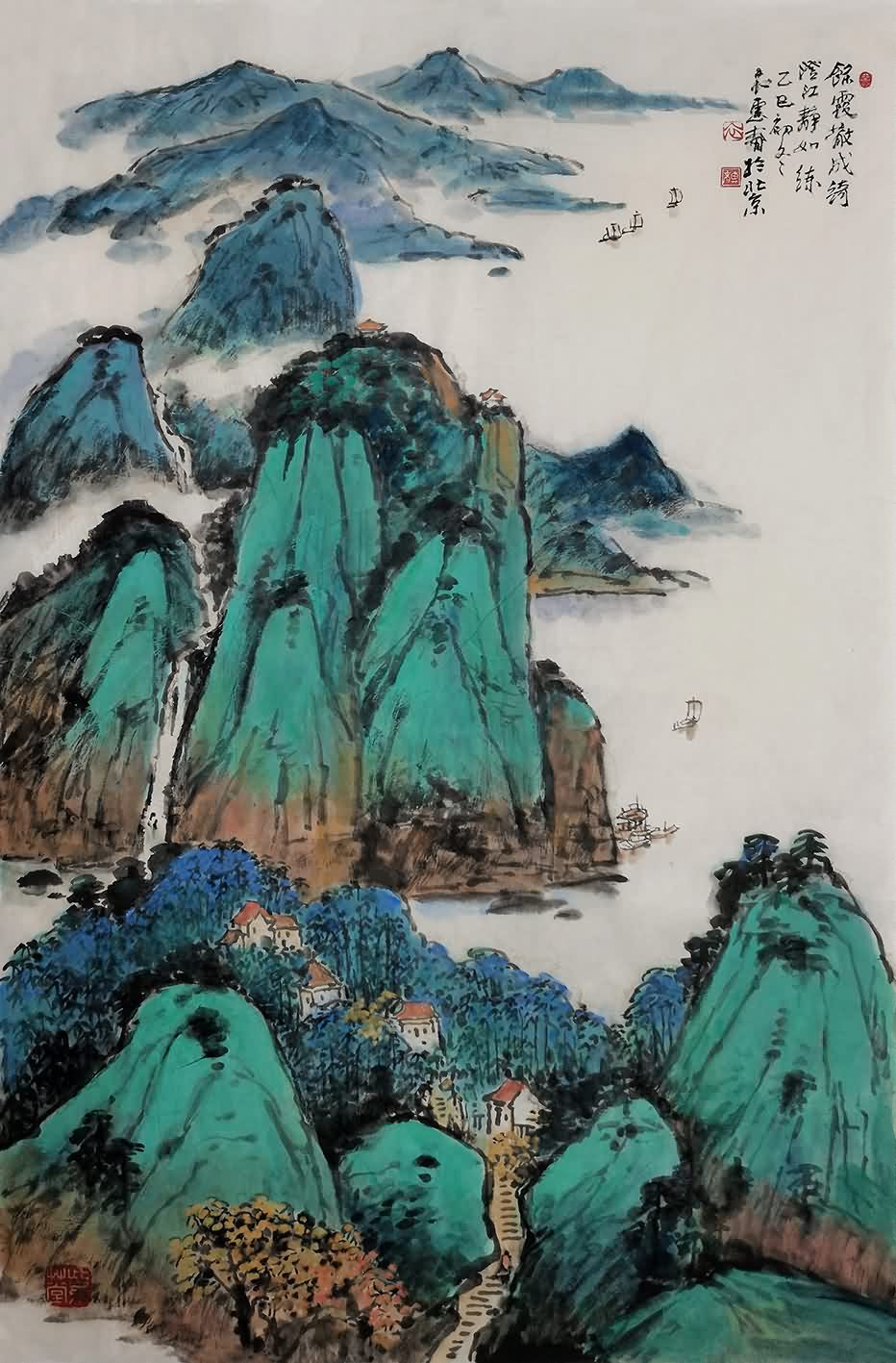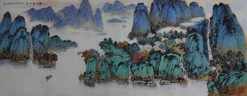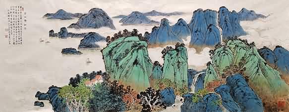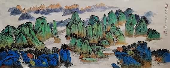 | 紫气东来180x90cm | 春山深处有人家240x120cm | 霞明深浅浪 风卷去来云 45x90cm | 沂蒙山小调240x120cm | 山为翠浪涌 水作玉虹流45x90cm |