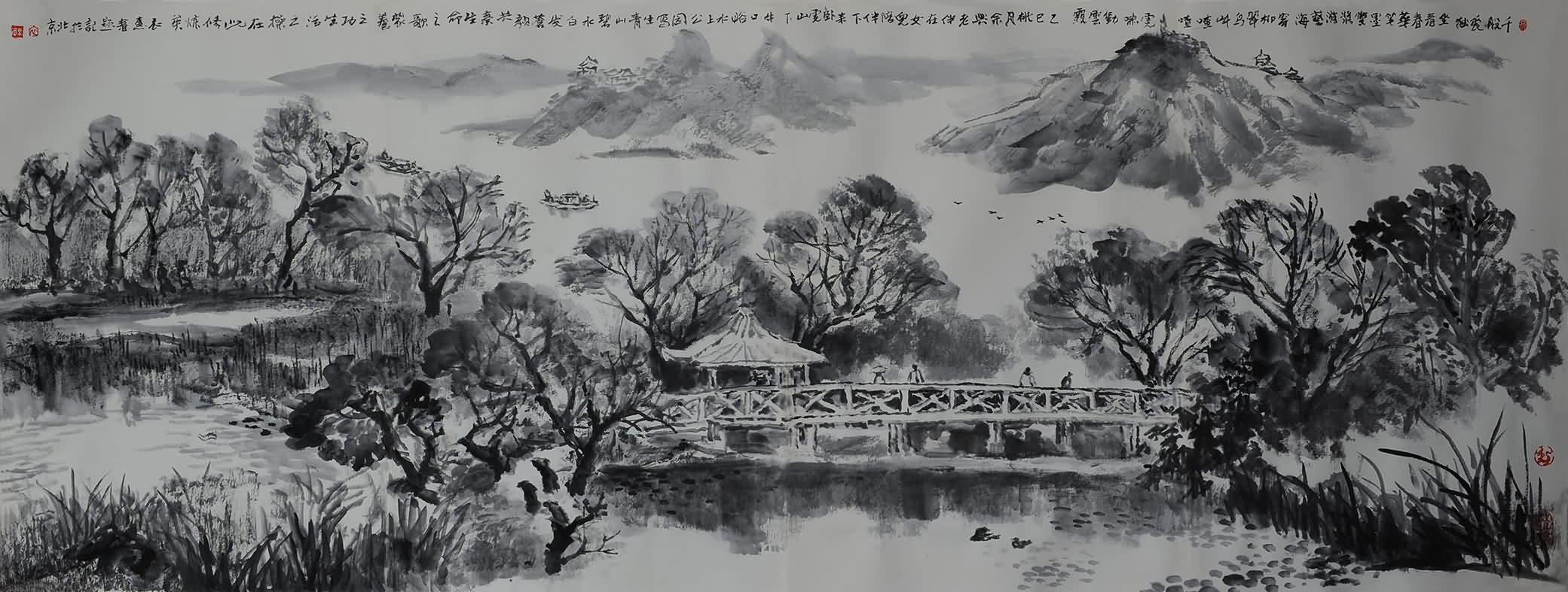 | 湖山春晓图180x45cm | 浩天舒白日 灵景耀神州140x35cm | 流水千溪月 寒岩万壑松140x35cm | ||