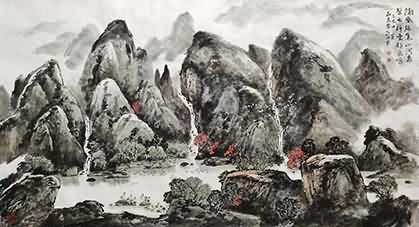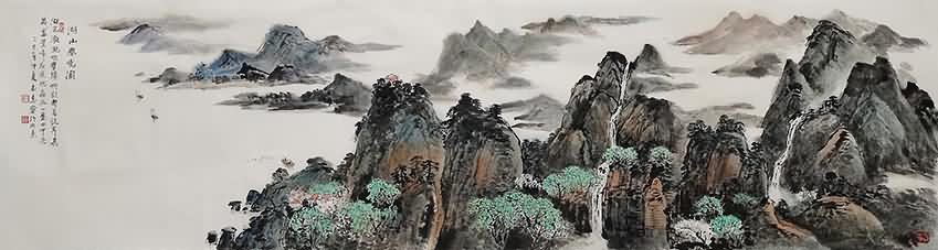 雁荡山胜境图180x70cm 秦岭观瀑图180x70cm |
