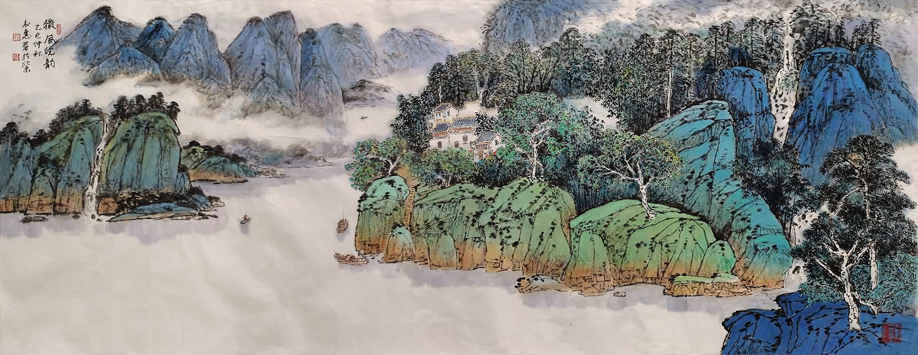 | 徽风皖韵180x70cm | 江流天地外180x90cm | 白云映兰天140x70cm | ||